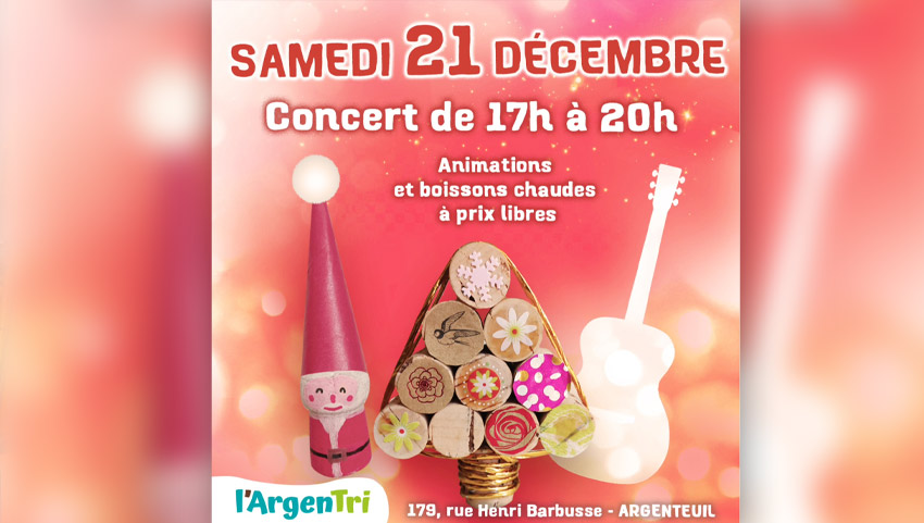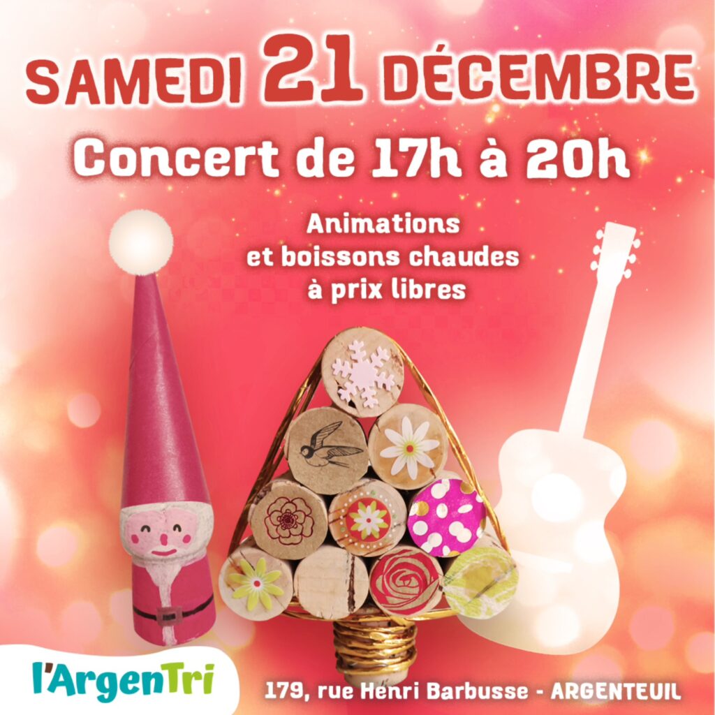 Venez fêter Noël à l’ArgenTri avec nous Samedi 21 décembre avec un concert et des boissons chaudes à prix libres.